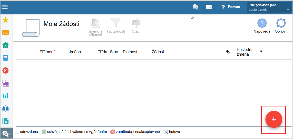 V časti 'Moje žádosti' kliknite na 'červené +'