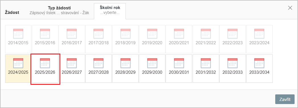 Zvoľte školský rok, na ktorý Zápisný lístok podávate.