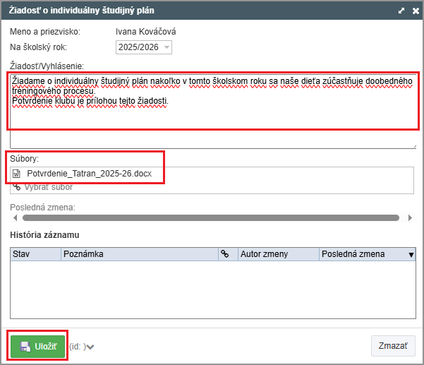 Zadajte text žiadosti, vložte prílohu a žiadosť odošlite.
