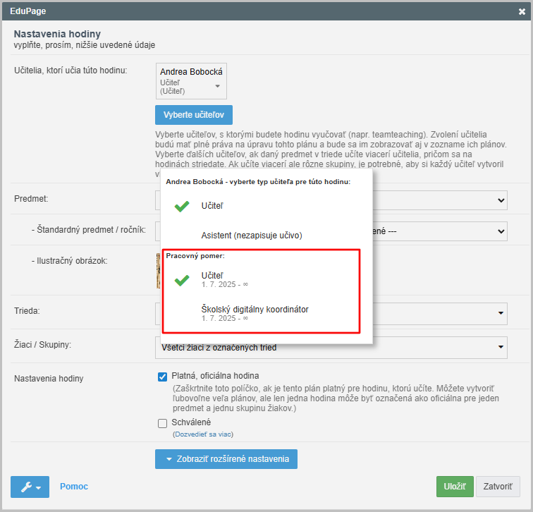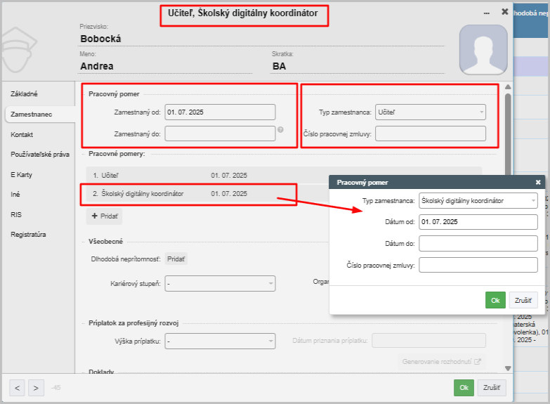 Takto zabezpečíme, že sa zamestnancovi vytvoria aj karty na dochádzky jednotlivých pomerov a taktiež možnosť voľby pomeru pri vytváraní vyučovacích hodín.