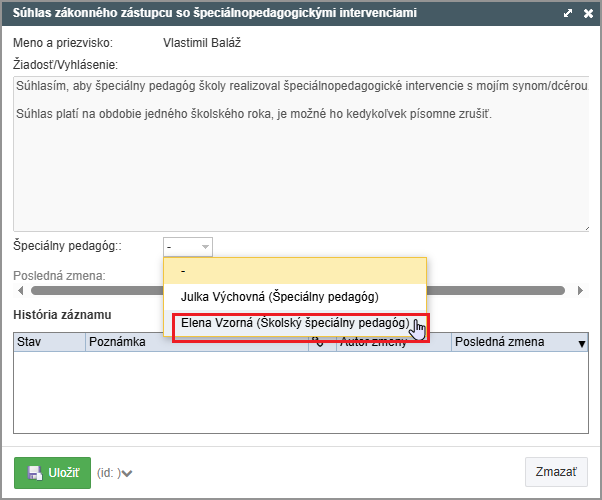 V súhlase vyberte meno špeciálneho pedagóga. Ak ich je viac, vyberte Vami požadovaného.