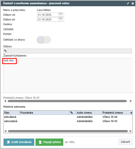 Žiadosť o pracovné voľno alebo Ako zapísať benefit "pracovné voľno podľa KZ" alebo "Sick day"?