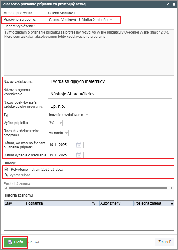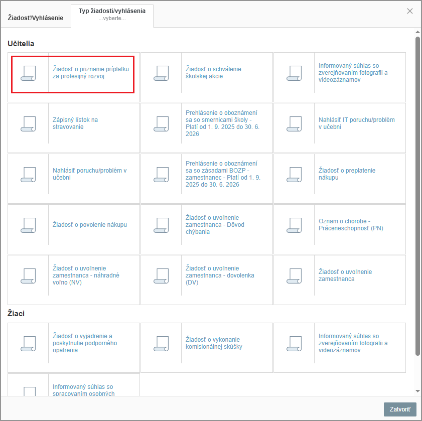 Žiadosť o priznanie príplatku za profesijný rozvoj - Učiteľ