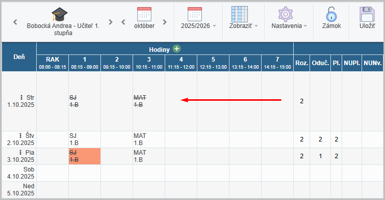 2. Zobrazí sa tabuľka, z ktorej pri pracovnom pomere vyberieme ten správny, ku ktorému dané suplovanie patrí. Zmeny uložíme.