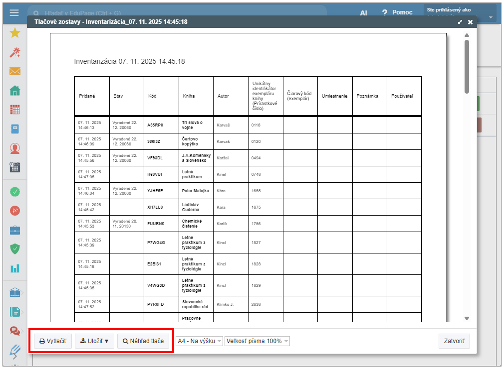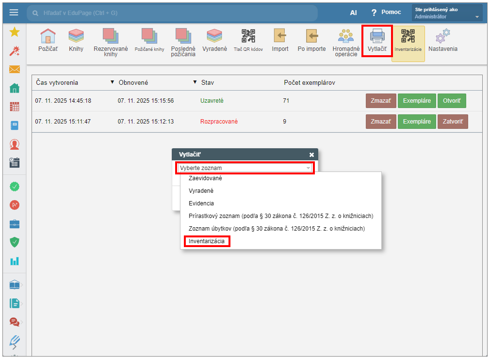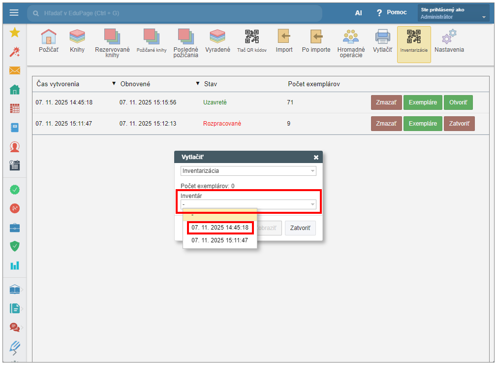 Ako vytvoriť inventarizačný zoznam v module Knižnica.