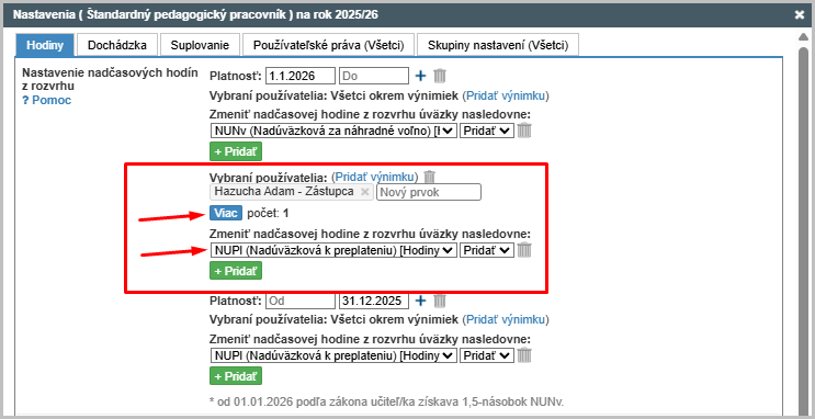 3. Vytvorí sa nová časť, kde si vyšpecifikujeme, že on bude mať tieto hodiny ako NUPl.