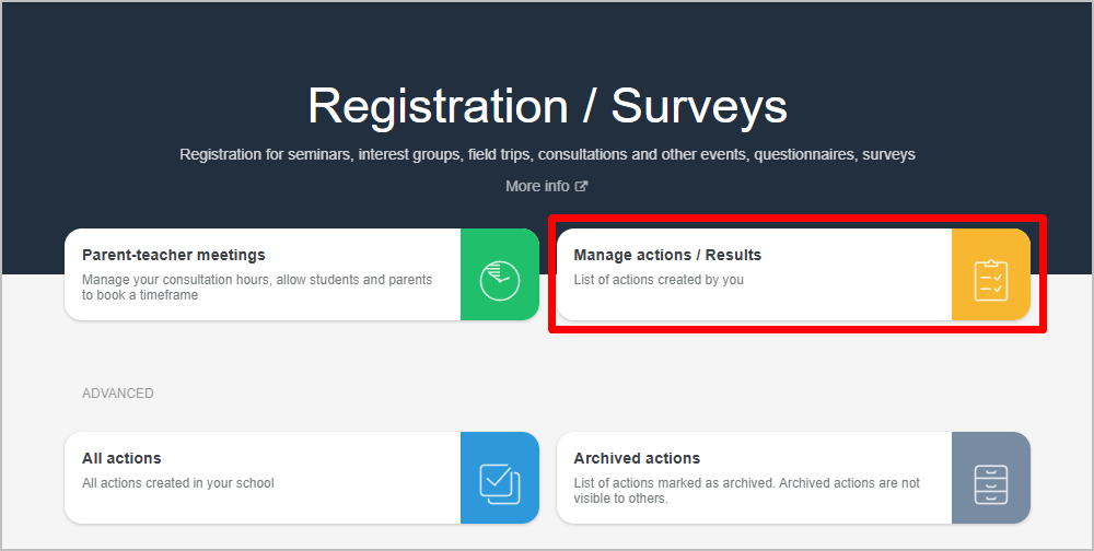 You can access sign‑up events and surveys by clicking on Communication in the left menu.