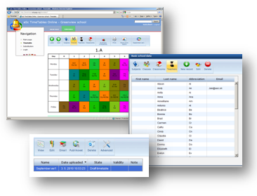 Timetables online is a web-based extension of the timetabling application. It offers several features that will help you with sharing the timetables, online backups, teachers daily plans, publishing substitution information and more. Everything is secured, hosted on aSc Servers, so that you do not need to maintain your web-server to get these new features.