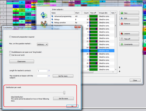 New "Apply to" options have been added "Apply to classrooms" a and "Apply to grades". So you can now apply constraints to all classes from one grade or to specify e.g that certain lesson can be just two afternoons per week in Media room and many similar