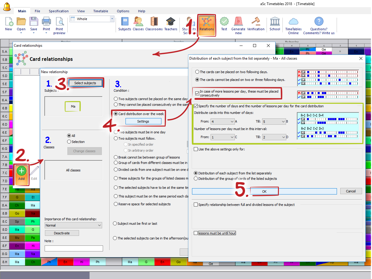 If you have 6 Math lessons per a 5-day week, then two of them will fall on the same day. In this case, you can tell the software to place these lessons consecutively.