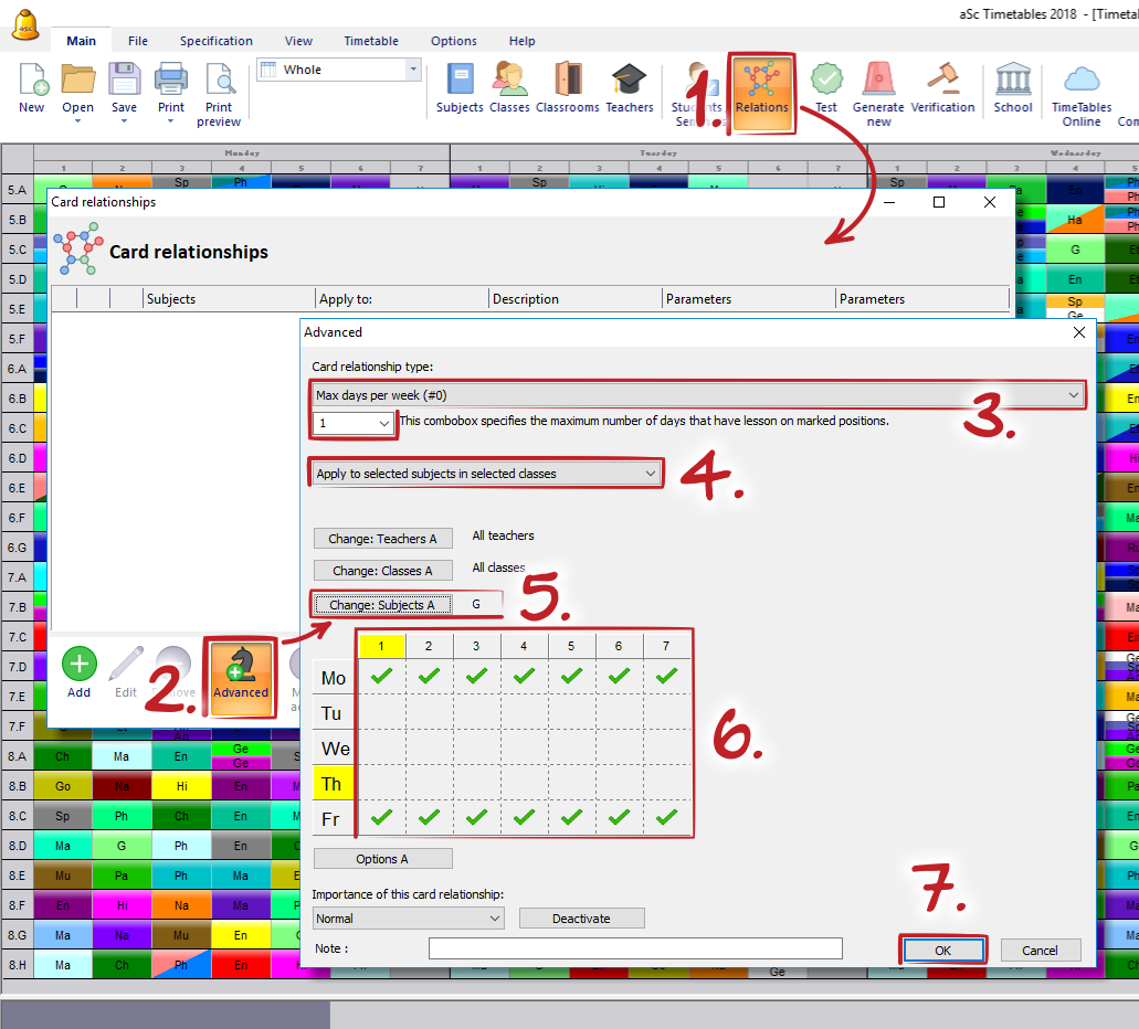 However by default Friday and Monday are not consecutive days. So if you do not want to have the lesson on Friday and then on Monday you have to define an advanced cardrelationship. Please check the following picture: