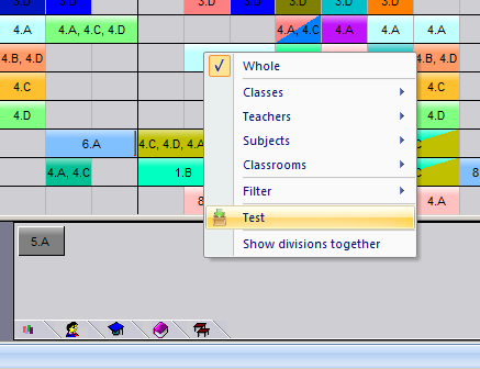2. Click right mouse button again and select Test. The software will now try to place all the cards into your timetable that match the Filter options selected in the first step.