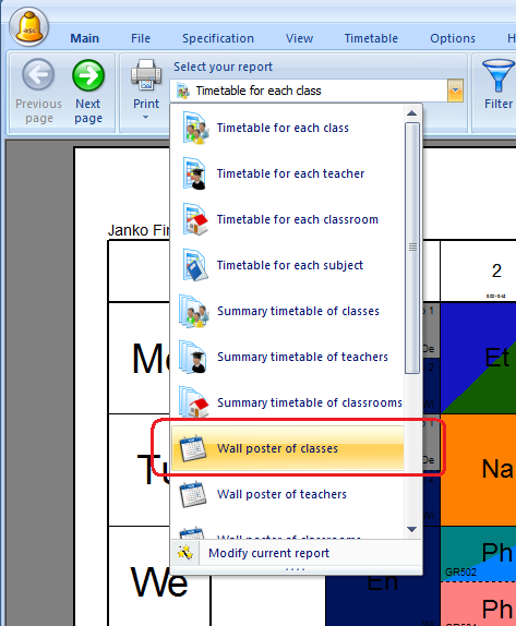Select that Wall poster from the list of available reports: