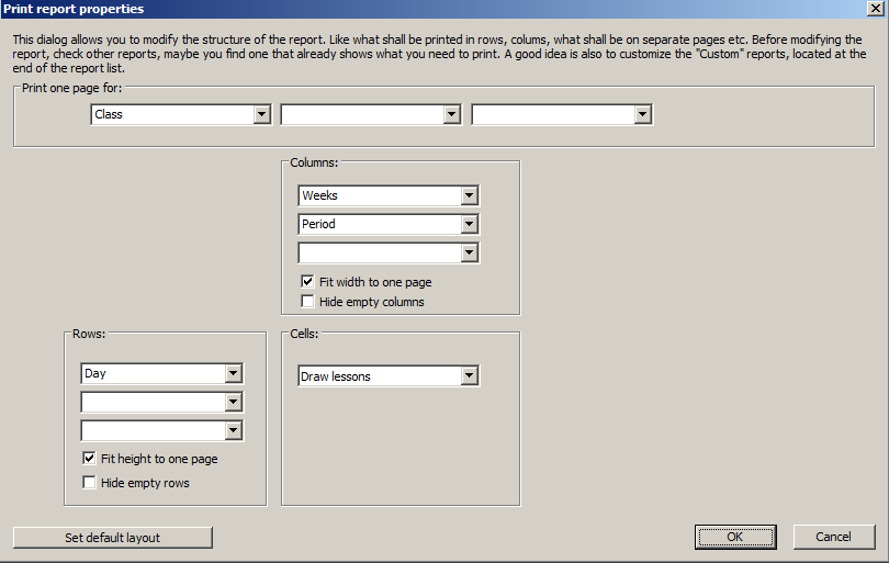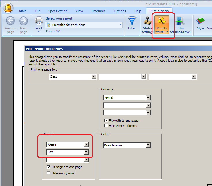 Printing weekly timetables