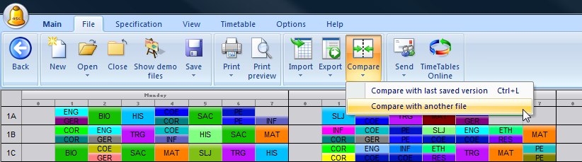There are two options how to compare your timetable files. You may find both in menu File - Compare.