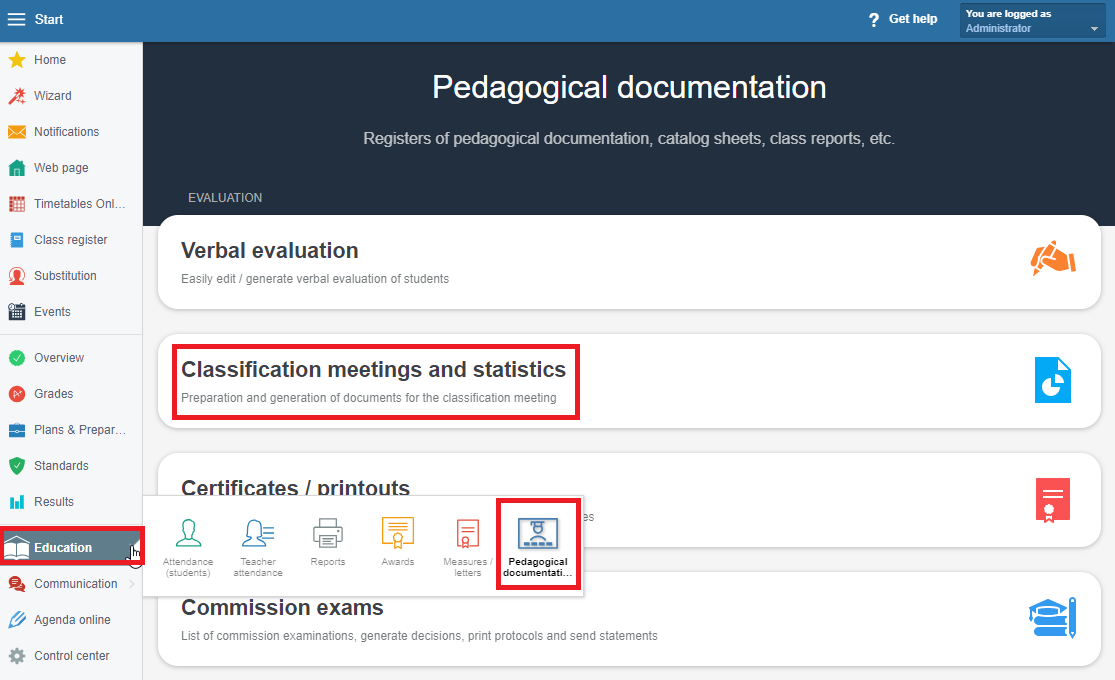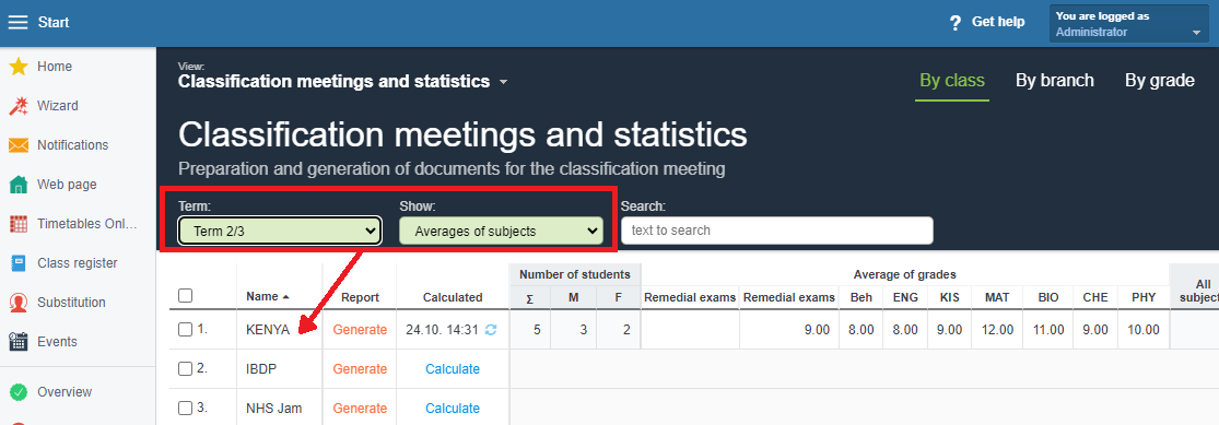 Pick a particular class in the Classification meetings and statistics module.