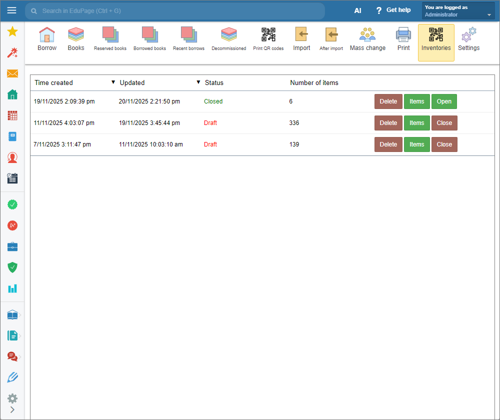 Go to the “Inventories” tab to scan the books physically available in your library and create inventory records.
