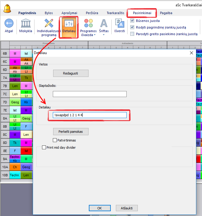 Paspauskite OK. Pamokos bus sukeistos taip: