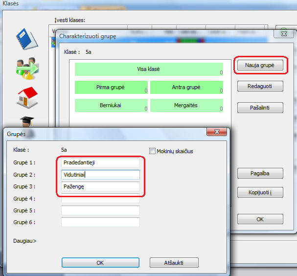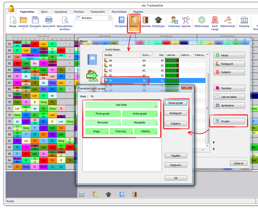 Įvedant pamokas, visuomet reikia nurodyti, kokiai grupei vyks ši pamoka. Pavyzdžiui, fizinio pamokas galima priskirti atskirai berniukų ir mergaičių grupėms. Arba visai klasei, nes visa klasė - taip pat grupė.