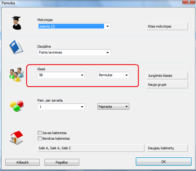 Tipiška situacija: fizinio lavinimo pamoka 3 grupėms iš dviejų klasių