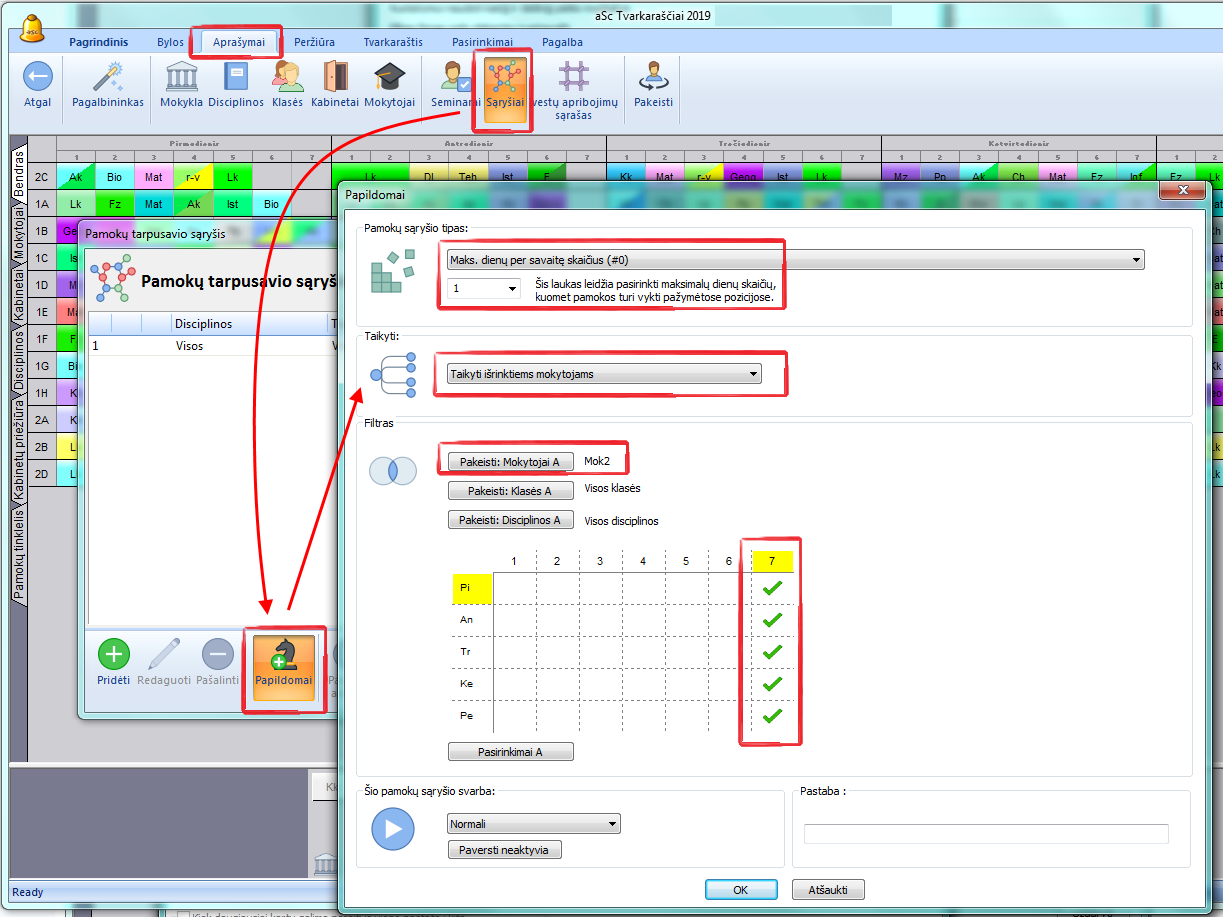Pavyzdžiui, 5-ta, 6-ta ir 7-ta pamokos pažymėtos klaustuku, ir Jūs norite, kad mokytojas turėtų ne daugiau nei 2 pamokas tuo laiku kiekvieną dieną. Taip galėsite būti tikri, kad viena valanda liks pietų pertraukai.