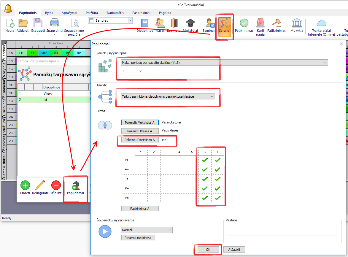 Nepamirškite nustatyti "Taikyti pasirinktoms disciplinoms ir klasėms".