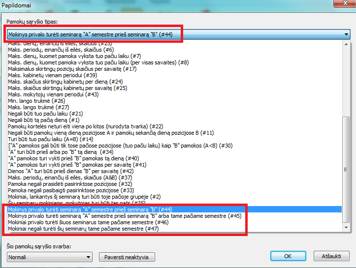 Jei mokinys turi pabaigti tam tikrą kursą (dalyką) ir tik po to gali pradėti kitą, galite pasinaudoti vienu iš šių sąryšių: