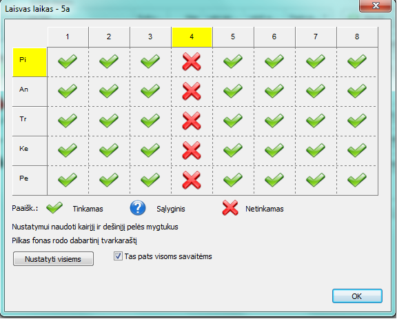 Pavyzdžiui, čia joks dalykas negali vykti 4-tą pamoką: