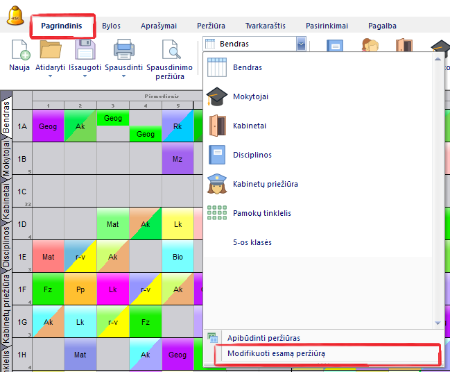 Čia galite, pavyzdžiui, pasirinkti, kad kabinetai būtų nuspalvinti disciplinos spalva, arba skirtingų mokyklos pastatų kabinetai būtų nuspalvinti skirtingomis spalvomis - tuomet galėsite lengvai atskirti, kuriame iš pastatų vyksta pamokos: