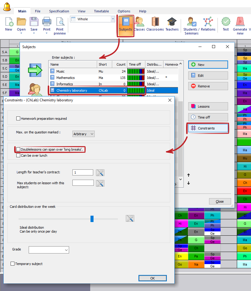 If you allow certain double lessons to span while others not that you can define for each subject individually if double lessons of this subject can or cannot span over the breaks. You can do this in subject Constraints: