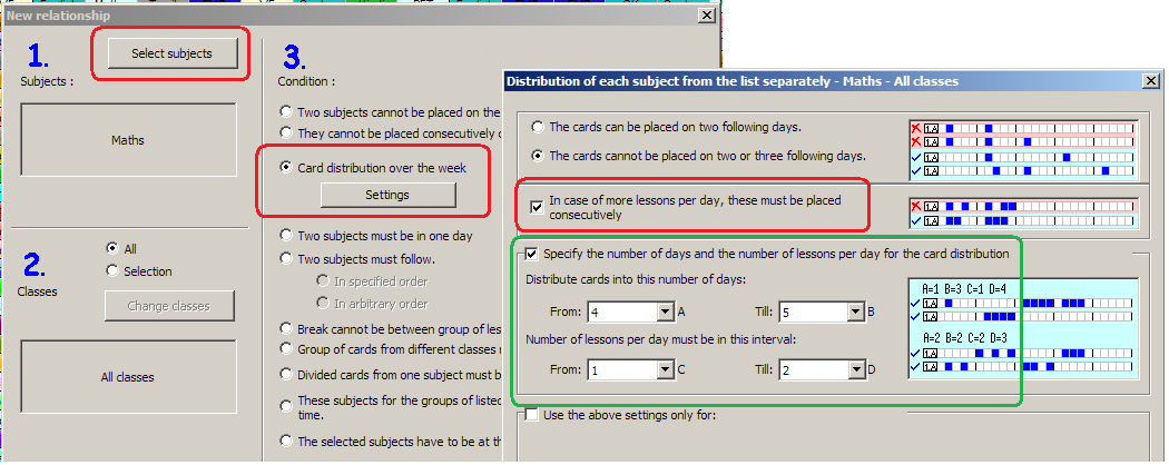 O que está em verde é opcional, se por exemplo você tiver 6 aulas de matemática, o ASC irá por padrão distribuir em 5 dias (um dia terá duas aulas).