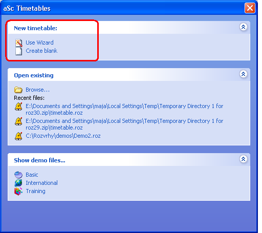 - dobra je ideja pogledati neke demo datoteke. Prvo pogledajte osnovne demo datoteke. Svi demo rasporedi su iz pravih škola.