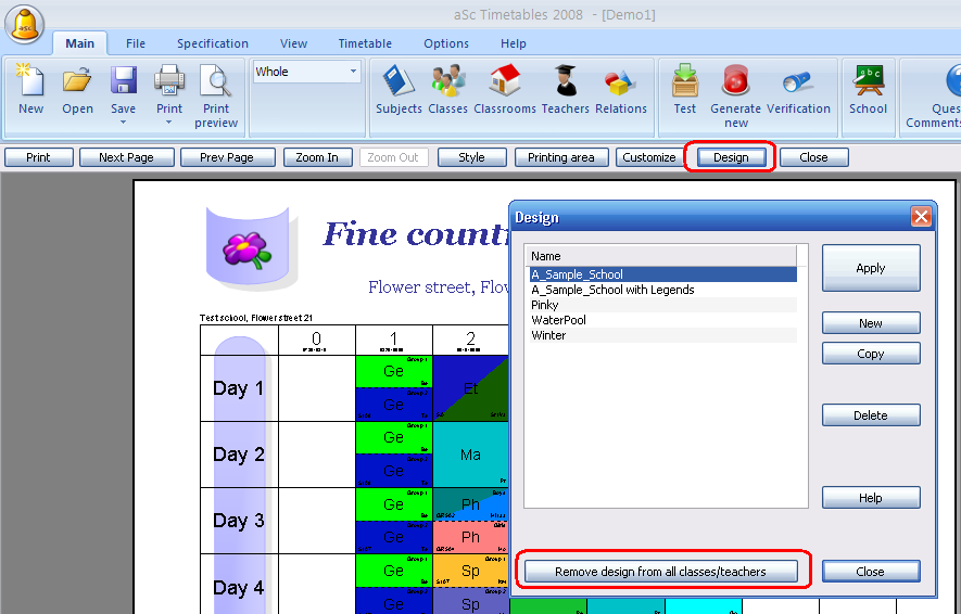או שאתה יכול להסיר את העיצוב של מערכת השעות שלך, כך שכל המערכות יודפסו ללא עיצוב. פשוט לחץ הצג הדפסה מוקדמת ולאחר מכן קליק ימני על המערכת ובחר "הסר עיצוב" :