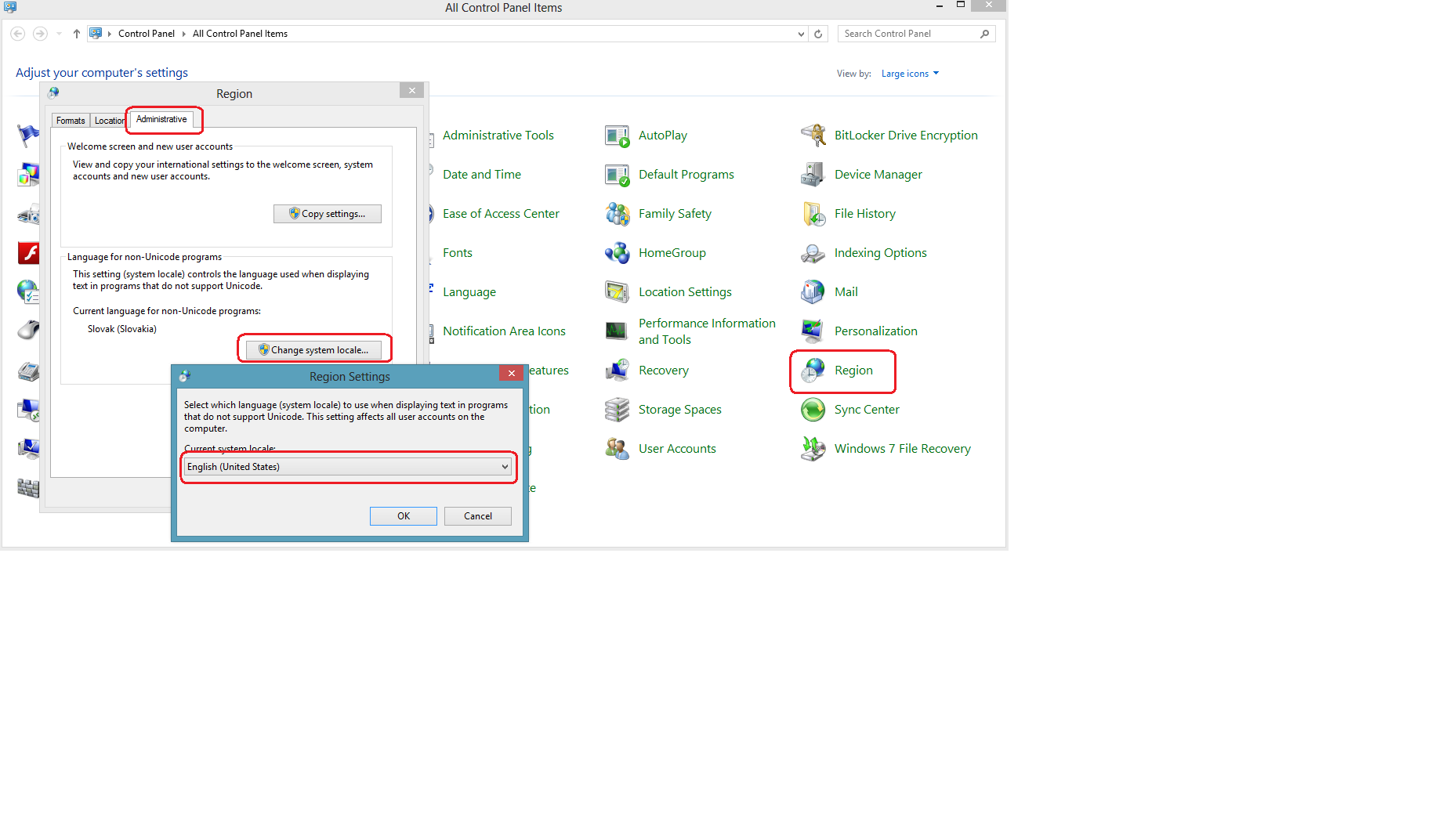 Та өөрийн ажиллах хэлээ Windows системийн Start->Control panel->Regional and Language тохируулгыг сонгож оруулна.