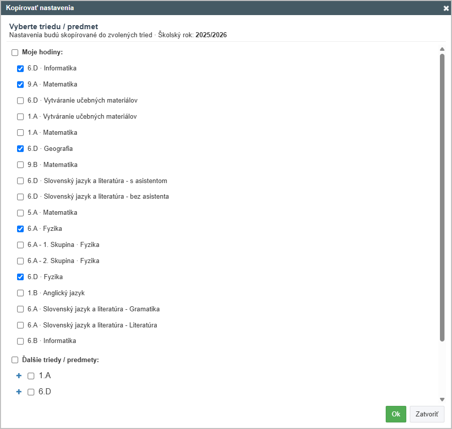 Ako skopírujem kategórie vytvorené v jednej hodine do inej svojej hodiny?