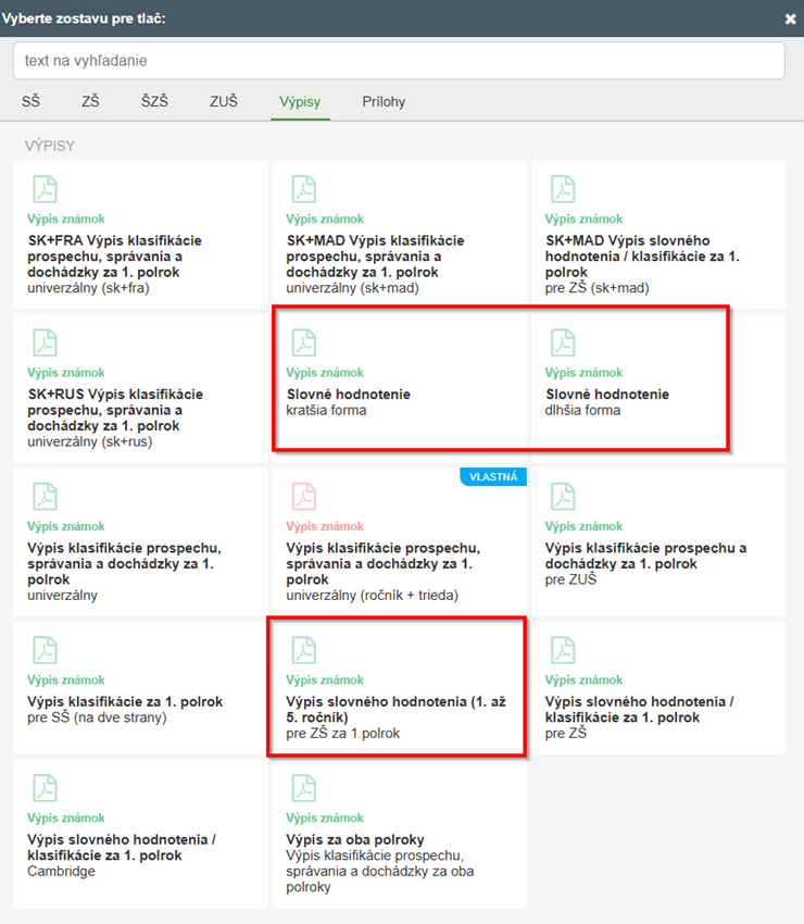 Ako sa vytlačí slovné hodnotenie na vysvedčení?