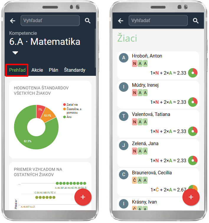 Kde vidím prehľad hodnotenia výkonových štandardov za daný predmet?