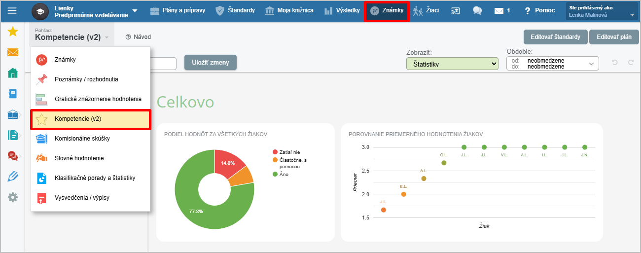 Prehľad hodnotenia kompetencií za všetky triedy