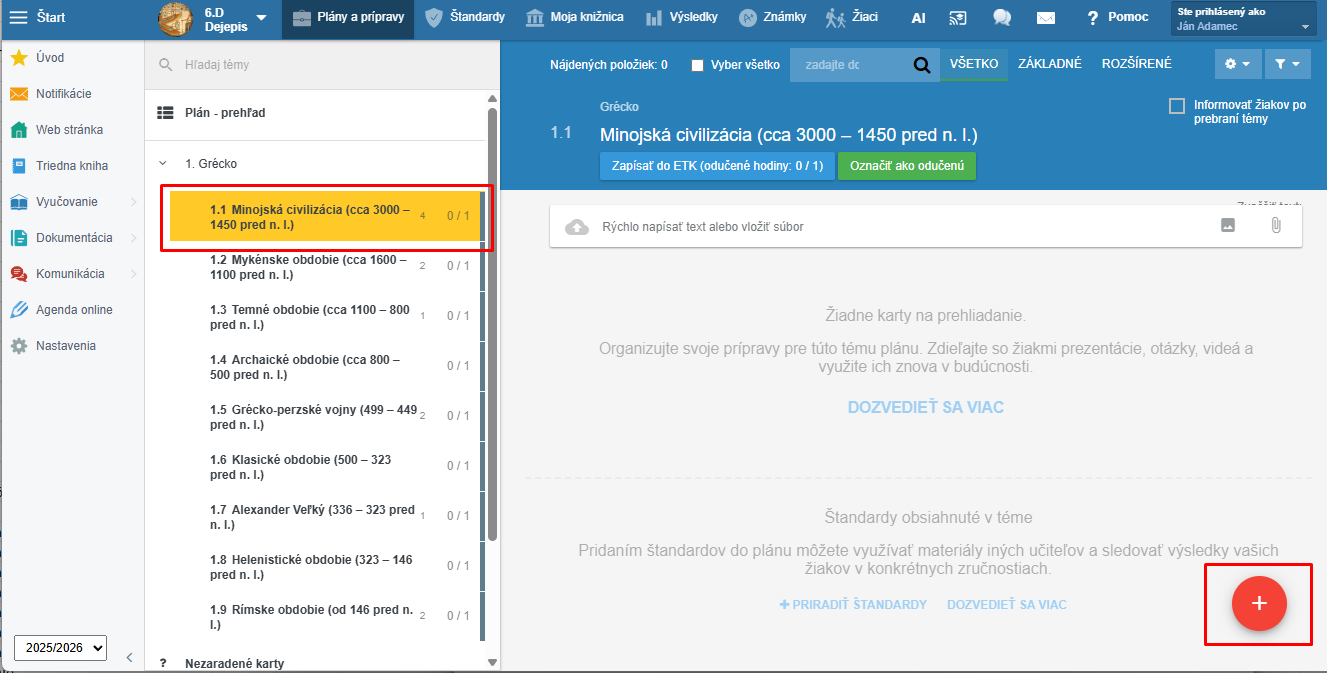 1. Nastavte sa na tému plánu, ku ktorej chcete pripraviť test. Stlačte červené +.