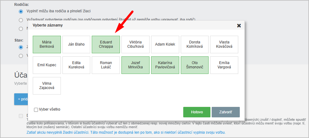 Ak potrebujete, aby v prihlasovacej akcii alebo v ankete hlasovali iba vybraní rodičia, postupujte takto: