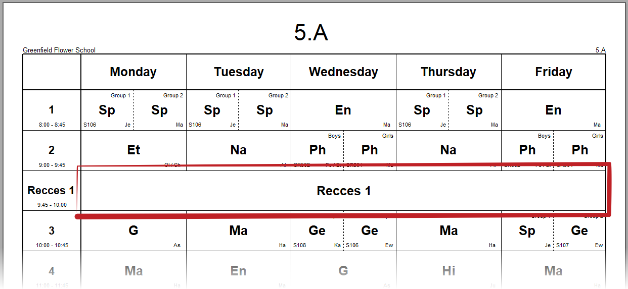 - nie je nutné pridávať všetky prestávky. Zvyčajne stačí ak zobrazíte časy jednotlivých vyučovacích hodín a študenti tak budú jasne vidieť, koľko majú času na prestávku medzi hodinami,