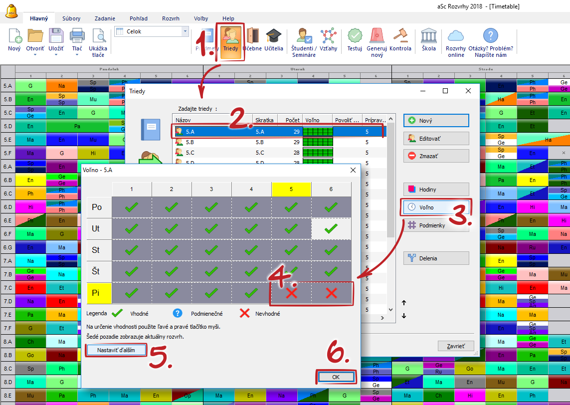 Použitím tlačítka 'Nastaviť všetkým' môžete nastaviť voľno viacerým triedam.