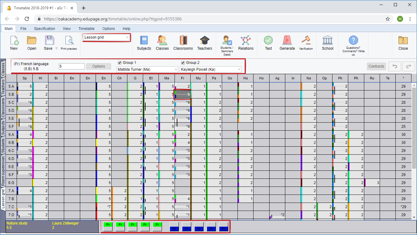 Osnova hodín vám na jednej obrazovke ukáže všetky hodiny na vašej škole. Môžete tiež z tohto miesta pridávať a upravovať hodiny: