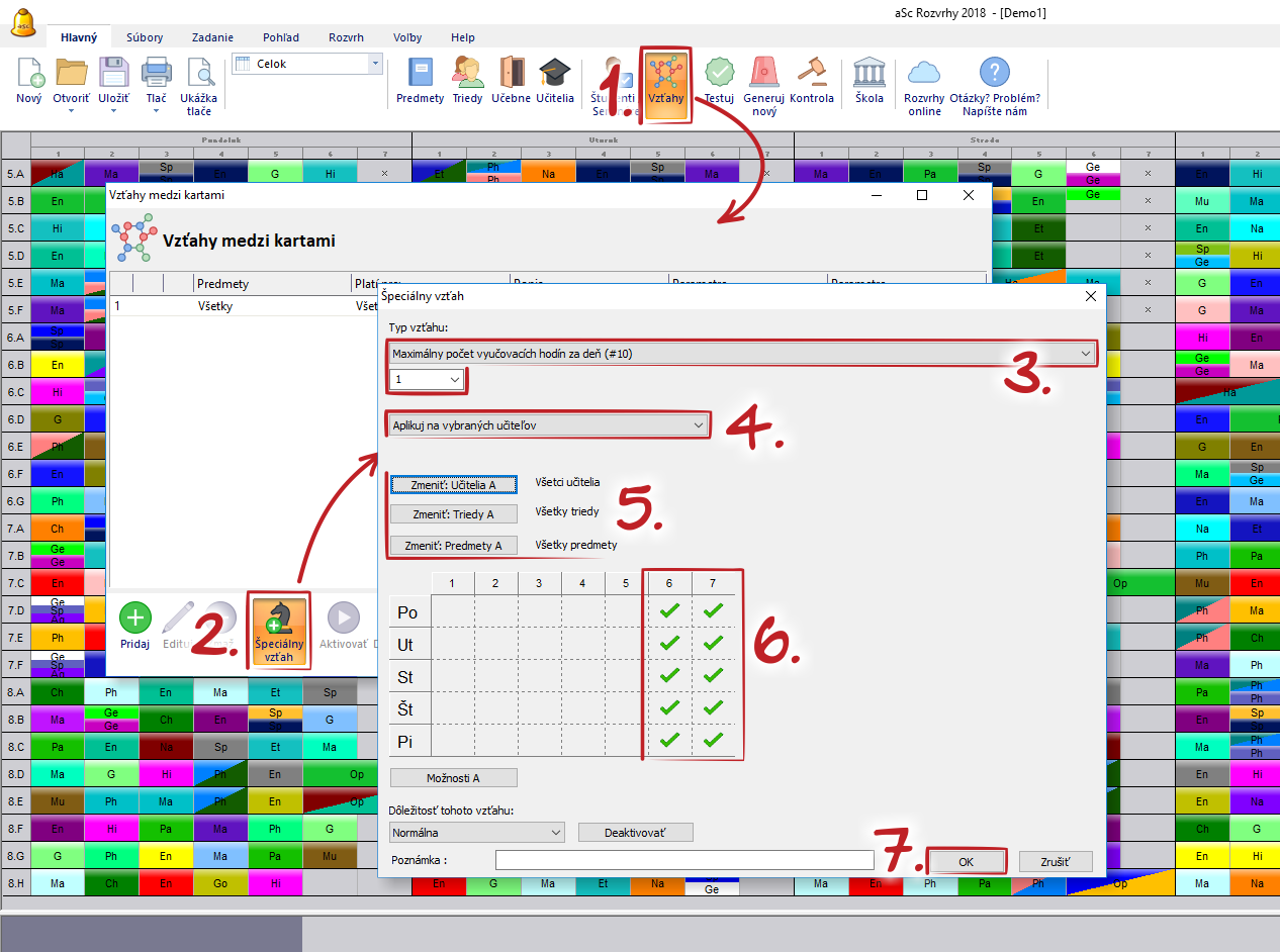Označte iba posledné dve vyučovacie hodiny - podmienka "Maximálne jeden krát za deň" sa aplikuje iba na tieto pozície.