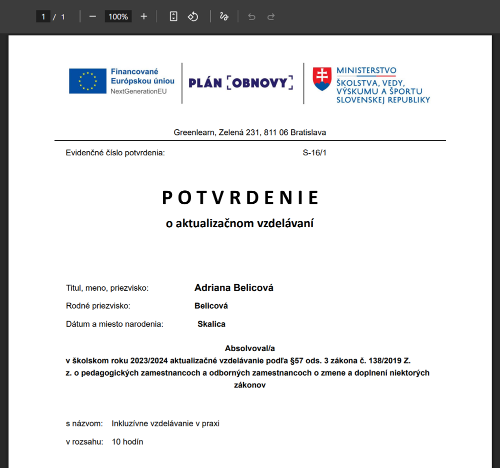 potvrdenie o vzdelavani