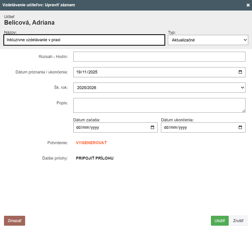 Ako zmazať/zmeniť potvrdenie o vzdelávaní?