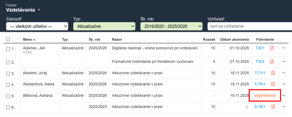 Ako vygenerovať potvrdenie o vzdelávaní? (Naša škola nepoužíva aSc Registratúru)