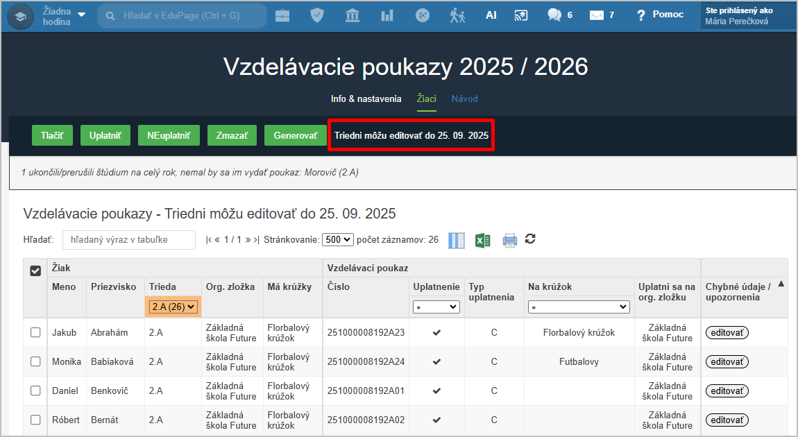 Triedny učiteľ v takom prípade vidí, dokedy je možné údaje zadávať.