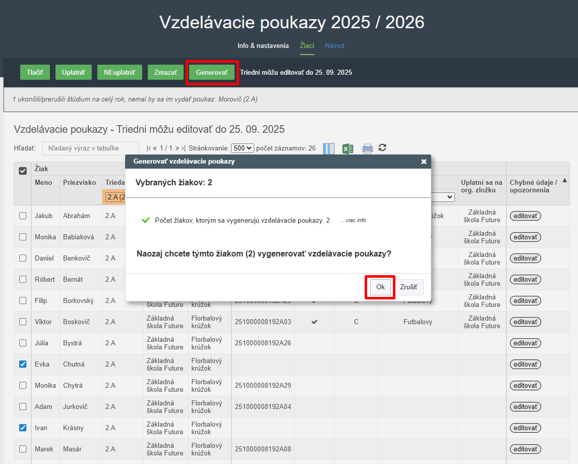 Viac o generovaní VP v tomto návode: Ako vygenerovať vzdelávacie poukazy?