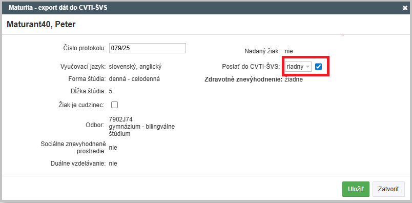 Poznámka: Odporúčame po odoslaní údajov do CVTI ŠVS, prihlásiť sa na portál maturita.svsbb.sk a skontrolovať údaje aj tam.